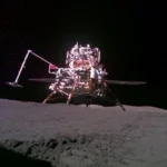 The Chang’e-6 service module likely fired its engines for a trans-Earth injection around June 21. The spacecraft is now on the final leg of its complex, 53-day voyage involving a lunar landing, sampling, ascent and docking. A reentry capsule containing the unique samples will be released from the service module shortly before arrival at Earth early June 25. Illustration credi The Chang'e-6 lander, topped with an ascent vehicle, imaged by a small rover in Apollo crater on the lunar far side. Credit: CNSA/CLEP